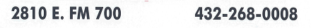 You can reach us by phone at 432-268-0008, by fax at 432-268-0011, by e-mail (Larry and Kari), or you can drop by the store at 2810 East FM 700 in Big Spring, Texas. Open Monday through Friday 9 to 5:30. Open late and weekends by appointment.
